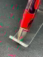 Every single detail from top to tip is original and has been carefully developed to appeal to football players, coaches, fans, and family. The top of the pen is sculpted to honor the grand architecture of a professional football stadium. The exterior of the stadium displays banners hanging beneath large windows and wrap around walkways. The interior of the stadium captures essential stadium components in wonderfully fine detail; from a scoreboard with lights, fan seating and hallways, player entrances and of course, the field. The pen clip features a graceful player in motion, cradling the ball with one arm and stiff arming with the other. The player runs on top of a yard marker that marks the football field center band; When you twist the pen to extend the refill, the marker will mark different points of the field center band to mimic a scoring drive. The football field center band includes precisely etched field lines and classic numbered yardage markers. The pen tip replicates a football with pigskin texture and contoured for a comfortable writing experience.